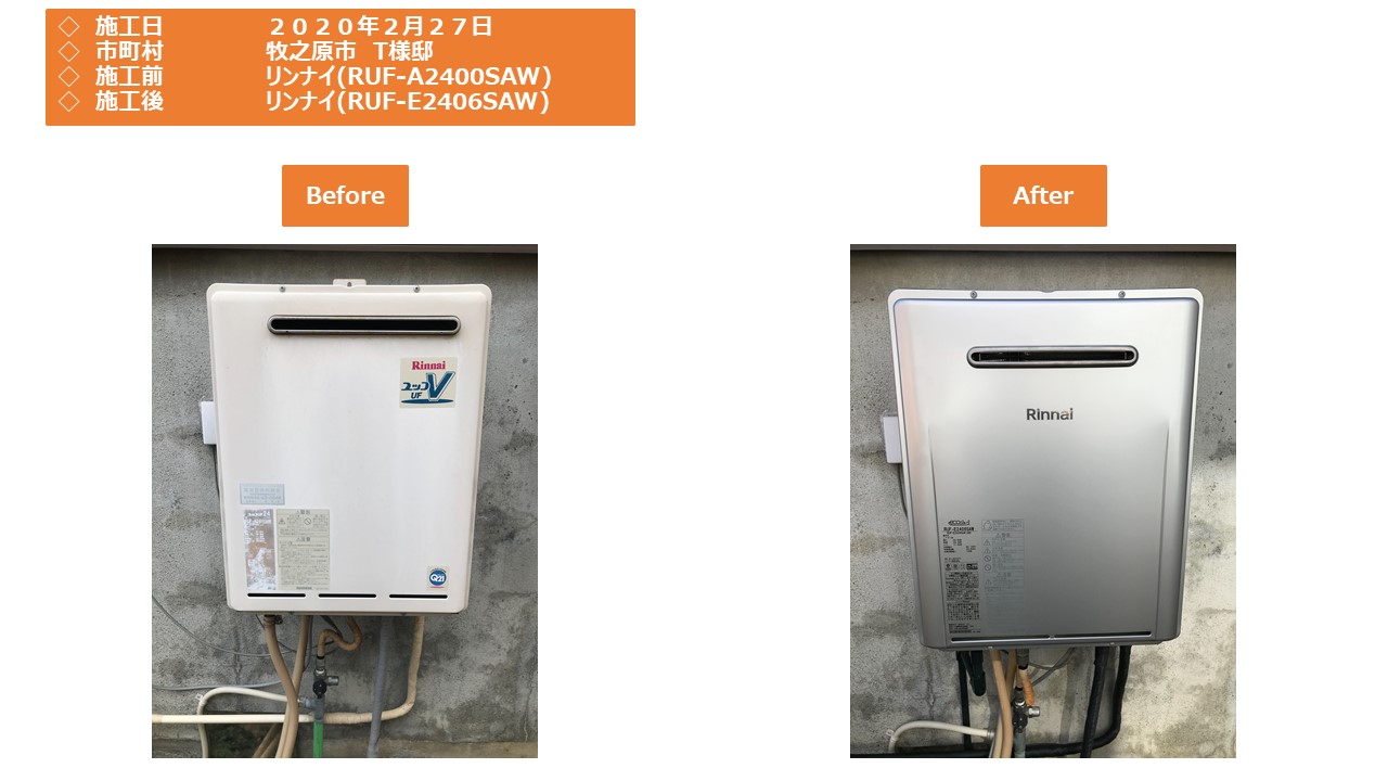 ガス風呂給湯器の取替工事 静岡県牧之原市 リンナイ RUF-E2406SAW の施工事例