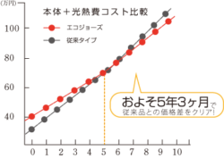 エコジョーズの機種にもよりますが、だいたい5年目からお得になるようです。