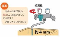 給湯栓から水が出るようになっても、機器や配管から水漏れがないか確認して使用してください。