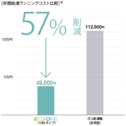 このようにエコワンとは、電気とガス、お互いの良いところを掛け合わせた画期的な給湯器なのです。