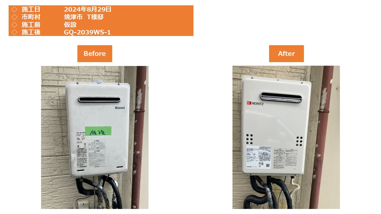 本日は、焼津市での給湯器施工事例をアップさせて頂きます。