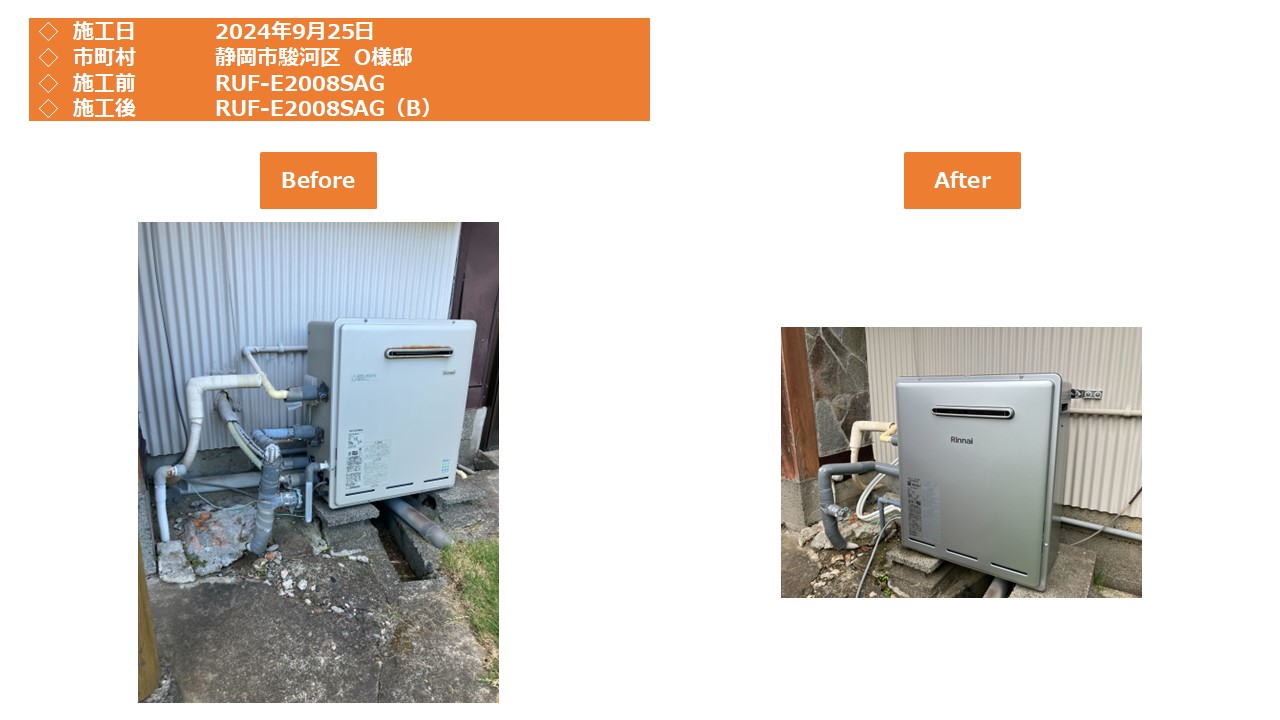 本日は、静岡市駿河区での給湯器施工事例をアップさせて頂きます。