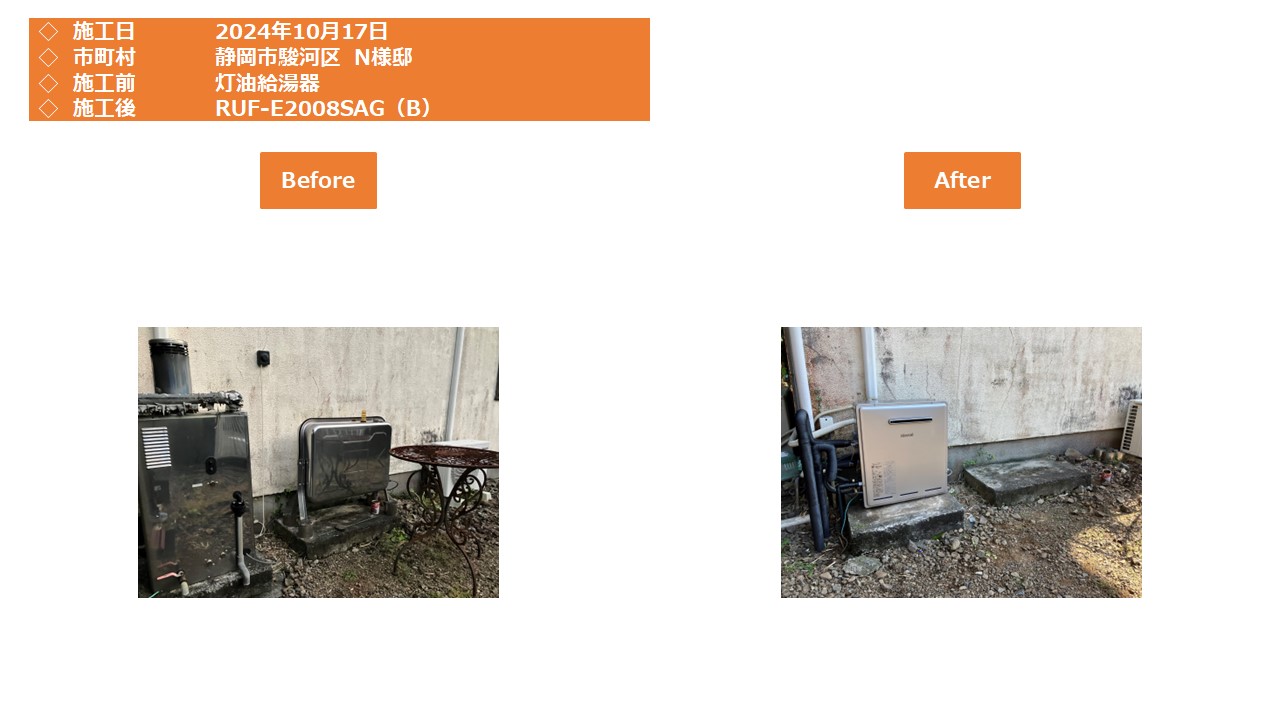 本日は、静岡市駿河区での給湯器施工事例をアップさせて頂きます。