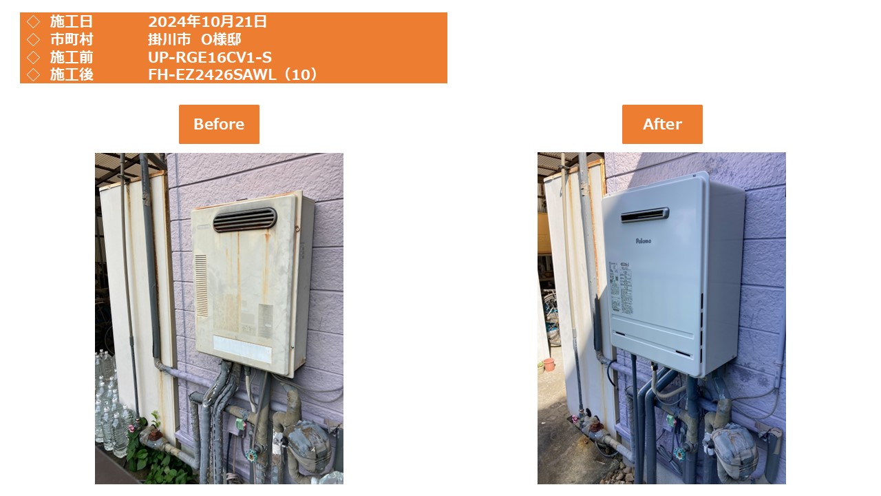 本日は、掛川市での給湯器施工事例をアップさせて頂きます。