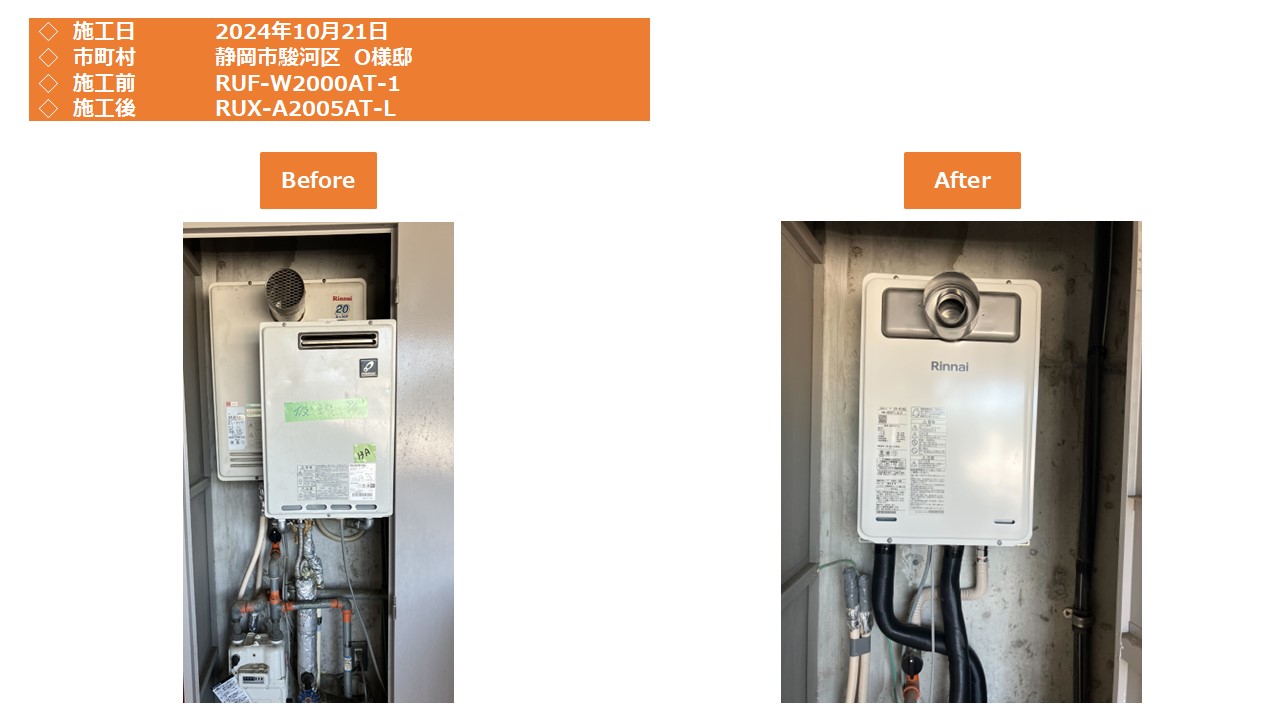 本日は、静岡市駿河区での給湯器施工事例をアップさせて頂きます。