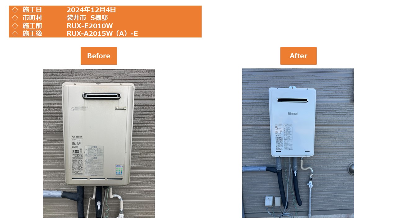 今回のお客様は、リンナイ「RUX-E2010W」から、リンナイ「RUX-A2015W(A)-E」への交換でした。