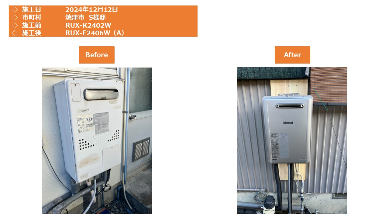 本日は、焼津市での給湯器施工事例をアップさせて頂きます。