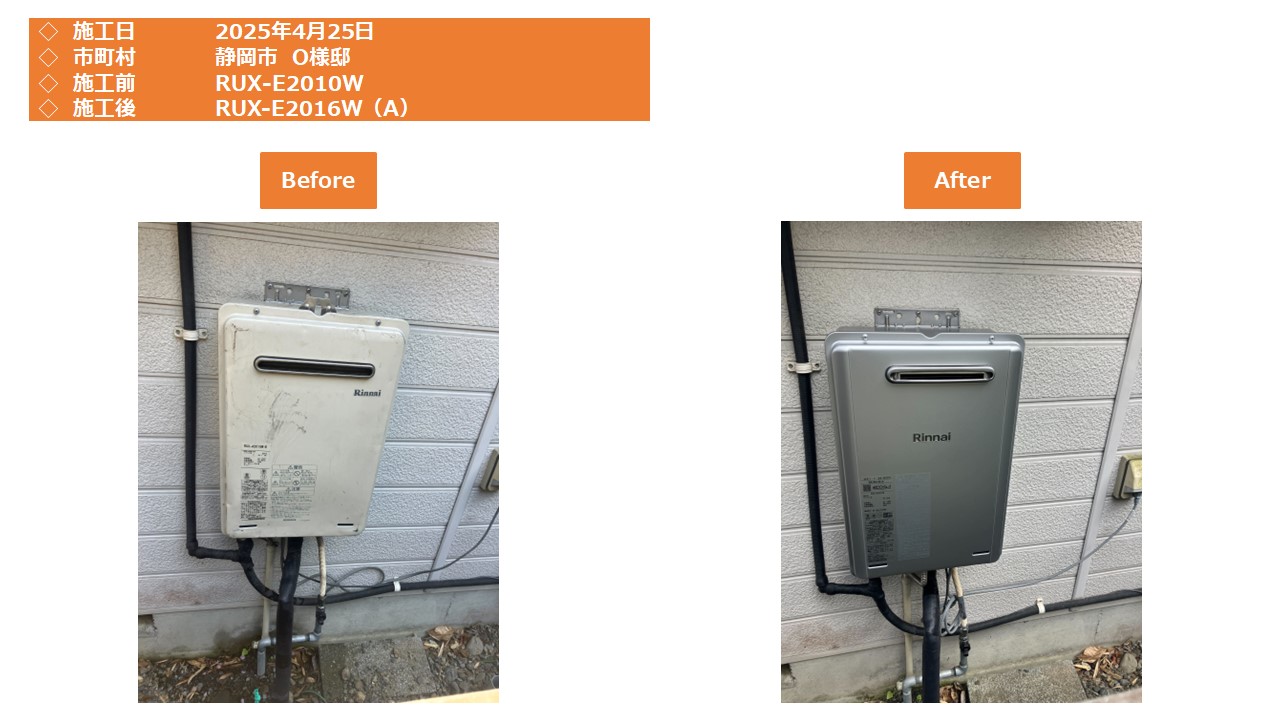 本日は、静岡市での給湯器施工事例をアップさせて頂きます。