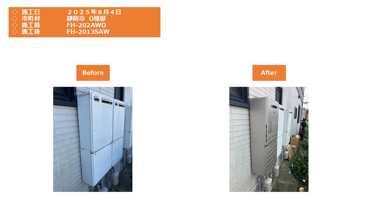 本日は静岡市での給湯器施工事例をアップさせていただきます。