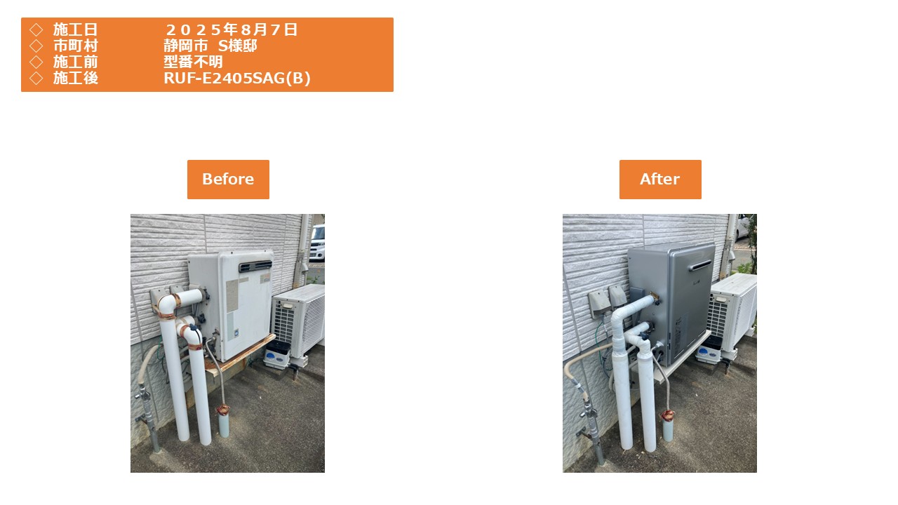 本日は静岡市での給湯器施工事例をアップさせていただきます。