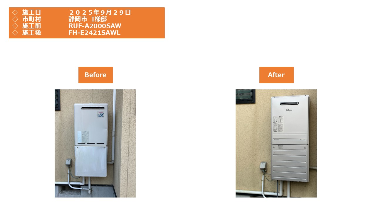 本日は静岡市での給湯器施工事例をアップさせていただきます。