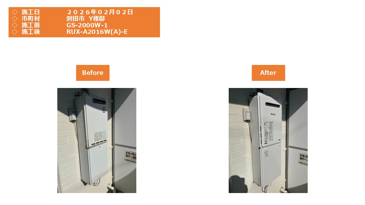 ガス風呂給湯器の取替工事 静岡県磐田市 リンナイ RUX-A2016W(A) の施工事例