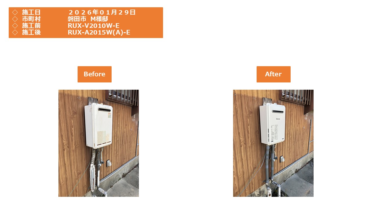 本日は磐田市での給湯器施工事例をアップさせていただきます。