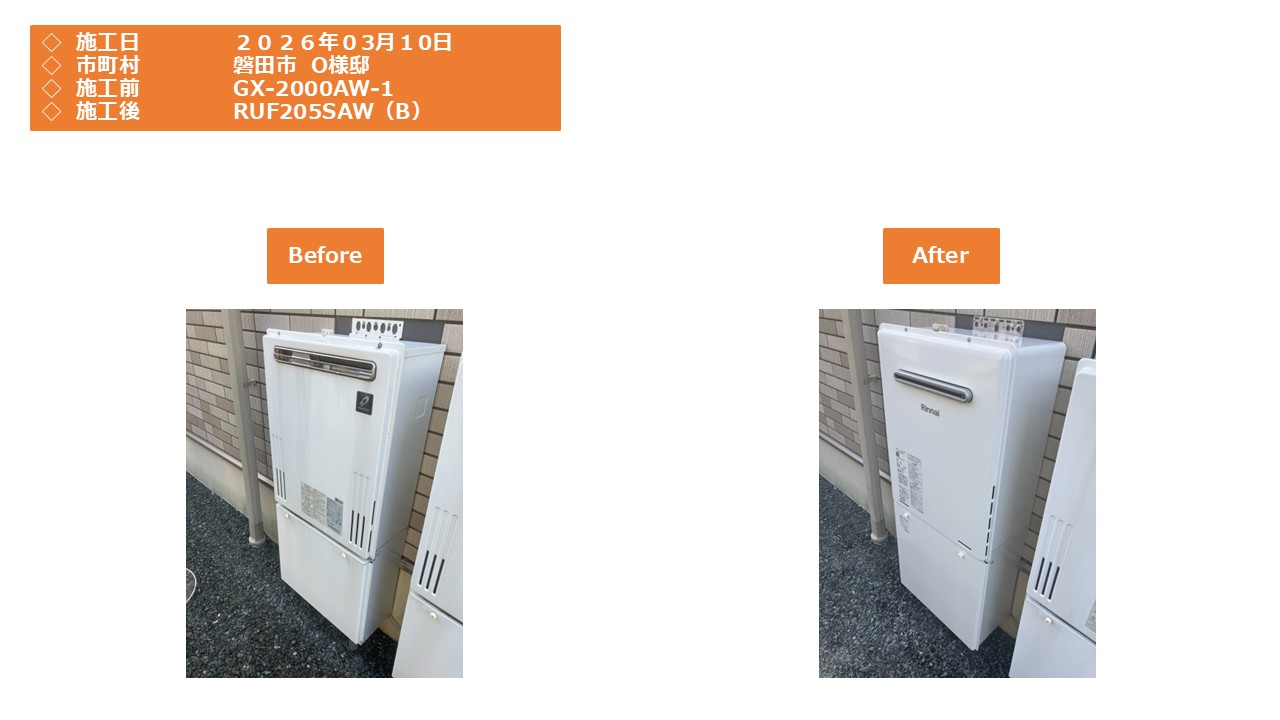本日は磐田市での給湯器施工事例をアップさせていただきます。