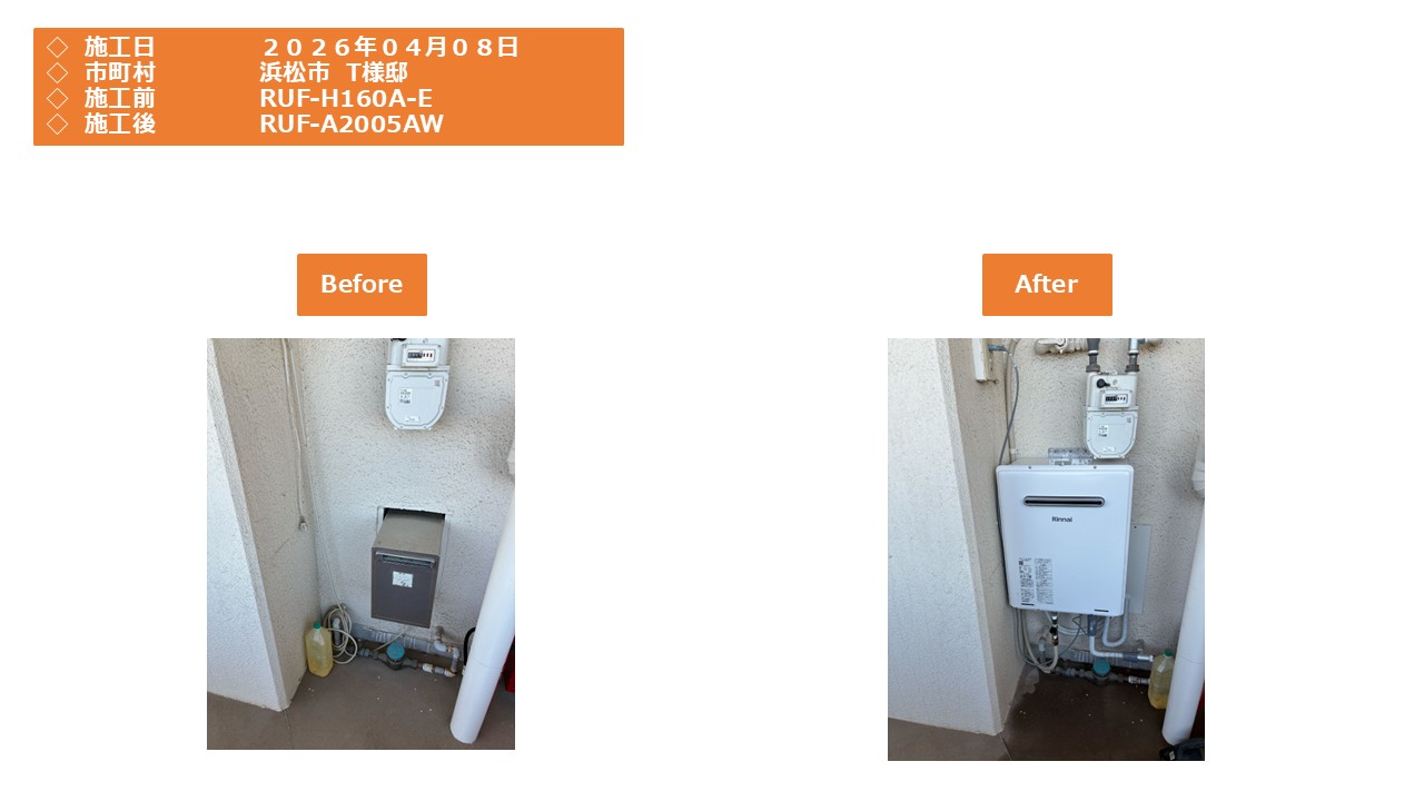 本日は、浜松市での給湯器施工事例をアップさせて頂きます。