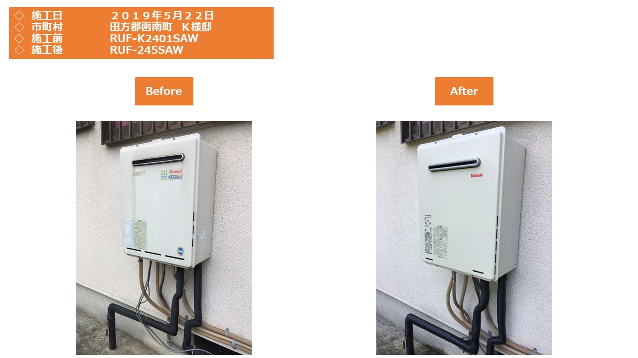 本日は、田方郡函南町での給湯器施工事例をアップさせていただきます。