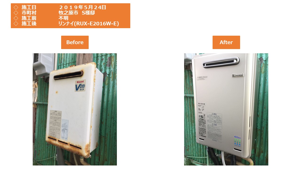 今回のお客様は、リンナイの「 RUX-E2016W-E」への交換でした。
