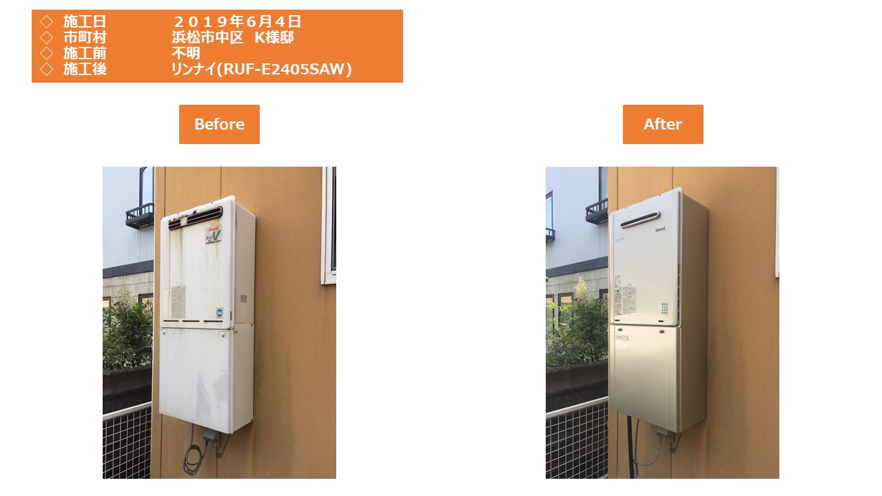 本日は、浜松市中区での給湯器施工事例をアップさせていただきます。
