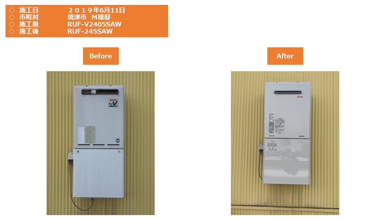 本日は、焼津市での給湯器施工事例をアップさせていただきます。