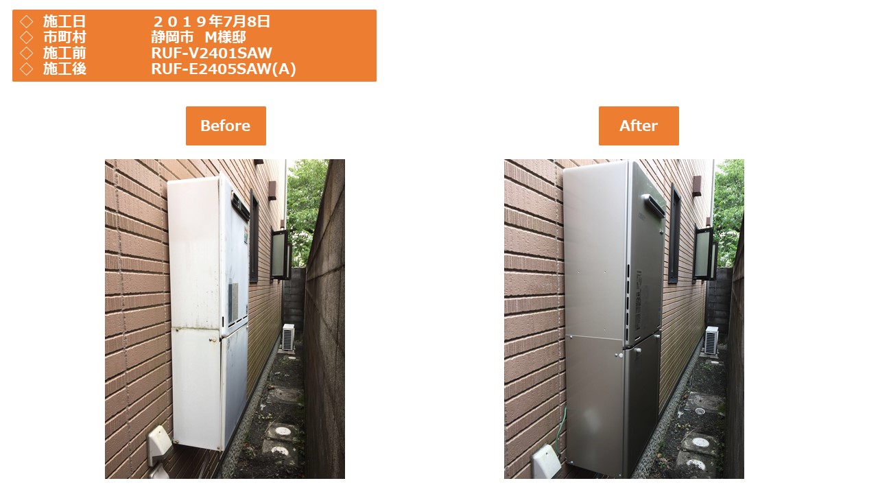 本日は、静岡市葵区での給湯器施工事例をアップさせていただきます。