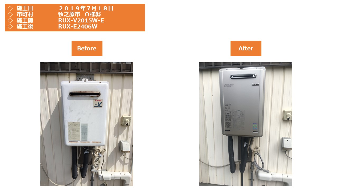 今回のお客様はリンナイの「 RUX-V2015W-E 」からリンナイの「 RUX-E2406W 」への交換でした。