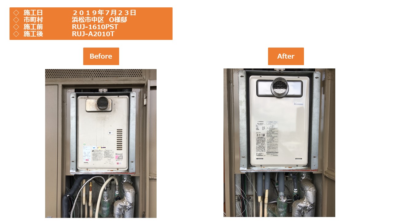 本日は、浜松市中区での給湯器施工事例をアップさせていただきます。