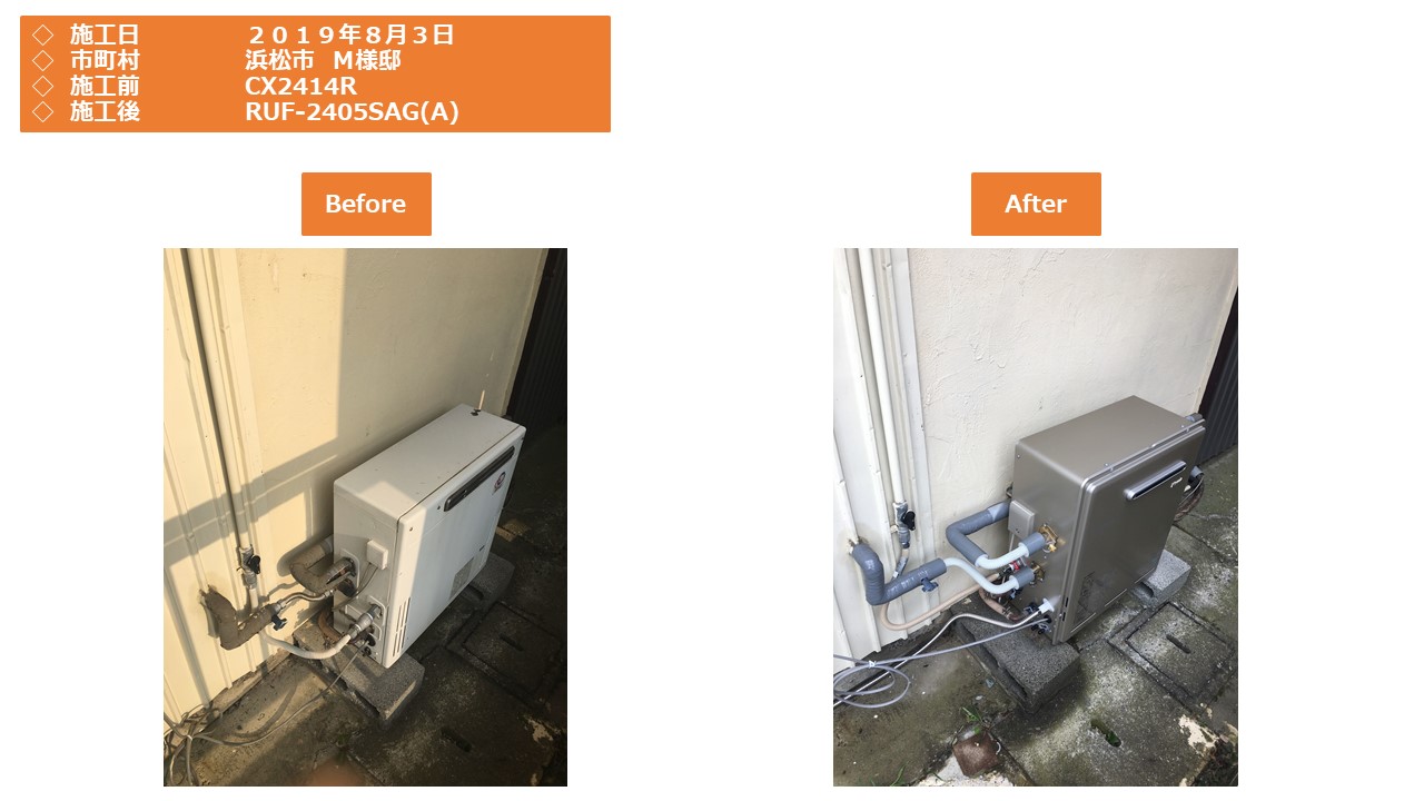 本日は、浜松市での給湯器施工事例をアップさせていただきます。