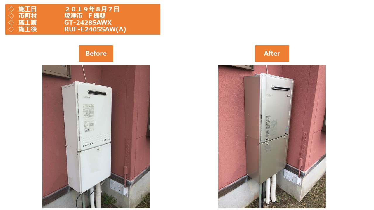 本日は、焼津市での給湯器施工事例をアップさせていただきます。