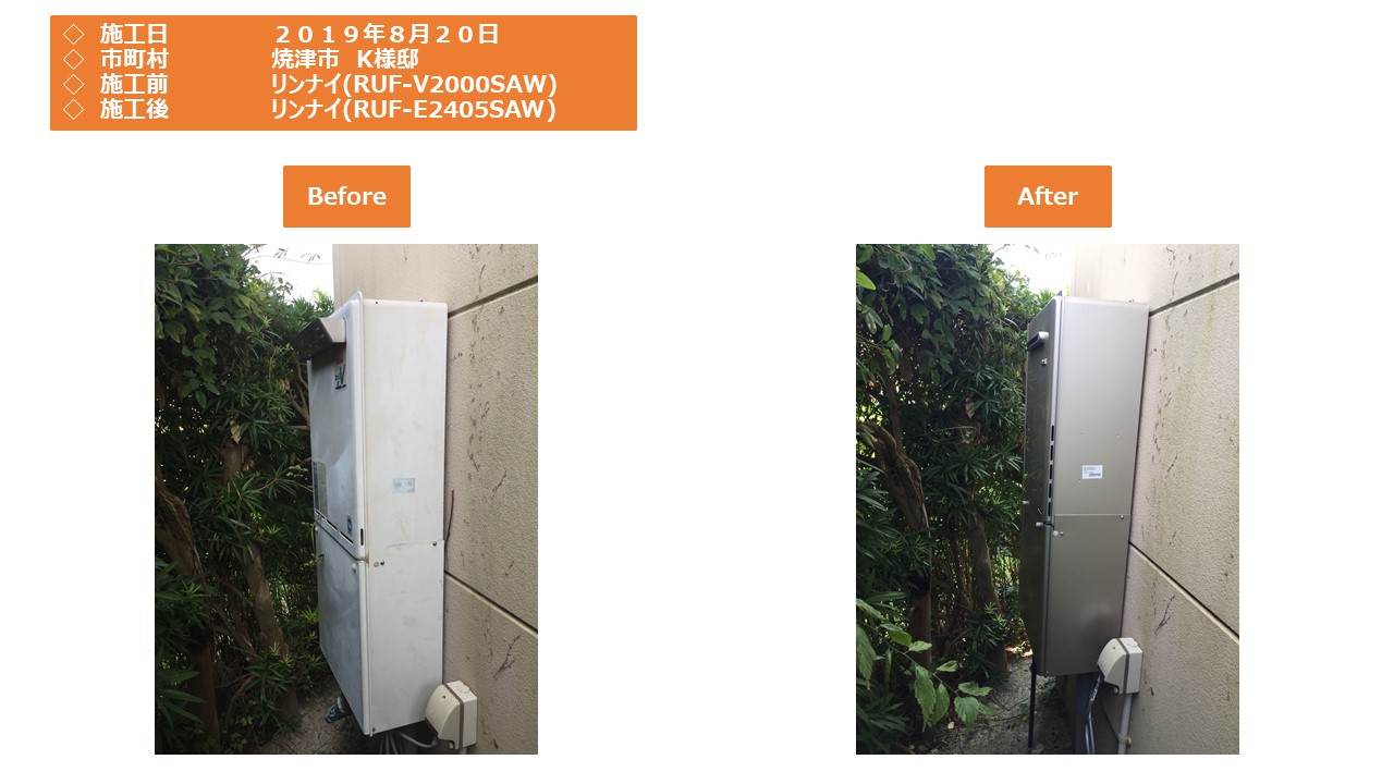 本日は、焼津市での給湯器施工事例をアップさせていただきます。