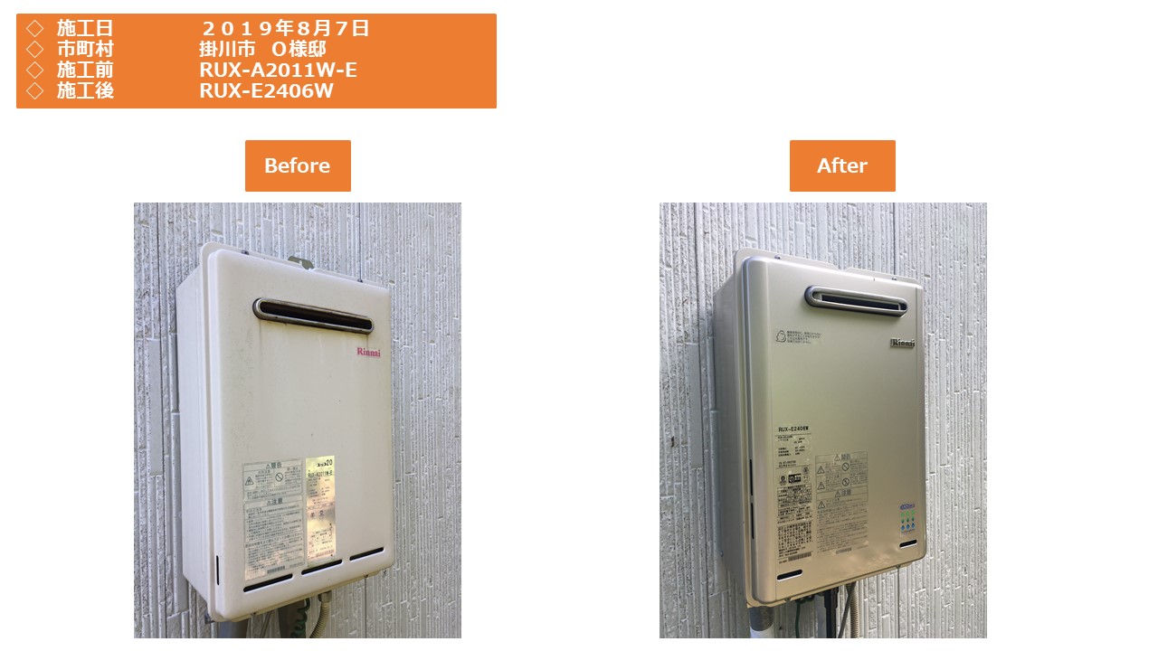 本日は、掛川市での給湯器施工事例をアップさせていただきます。