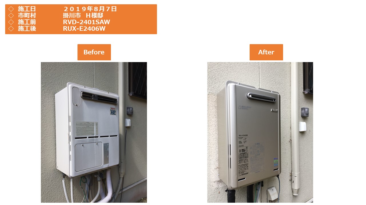 本日は、掛川市での給湯器施工事例をアップさせていただきます。