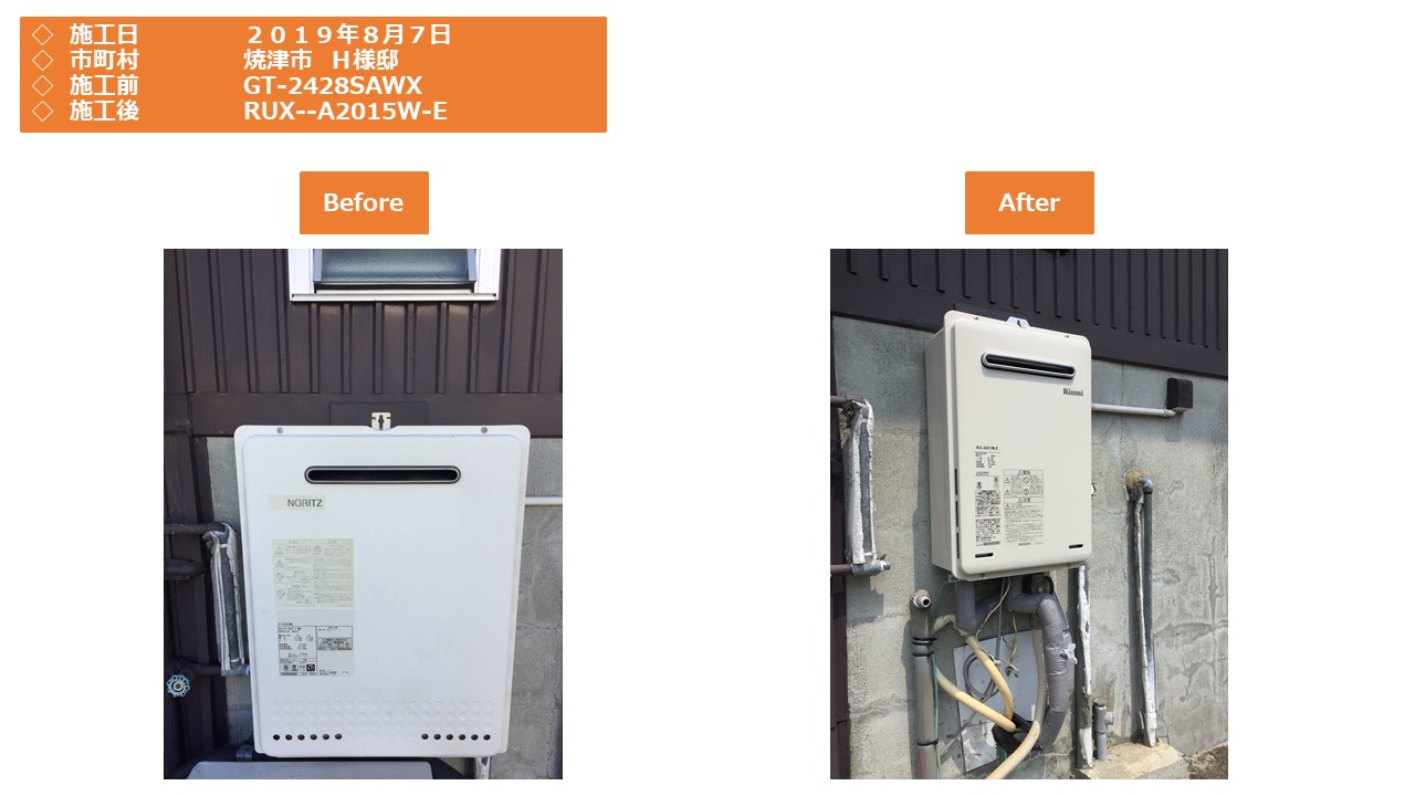 本日は、焼津市での給湯器施工事例をアップさせていただきます。