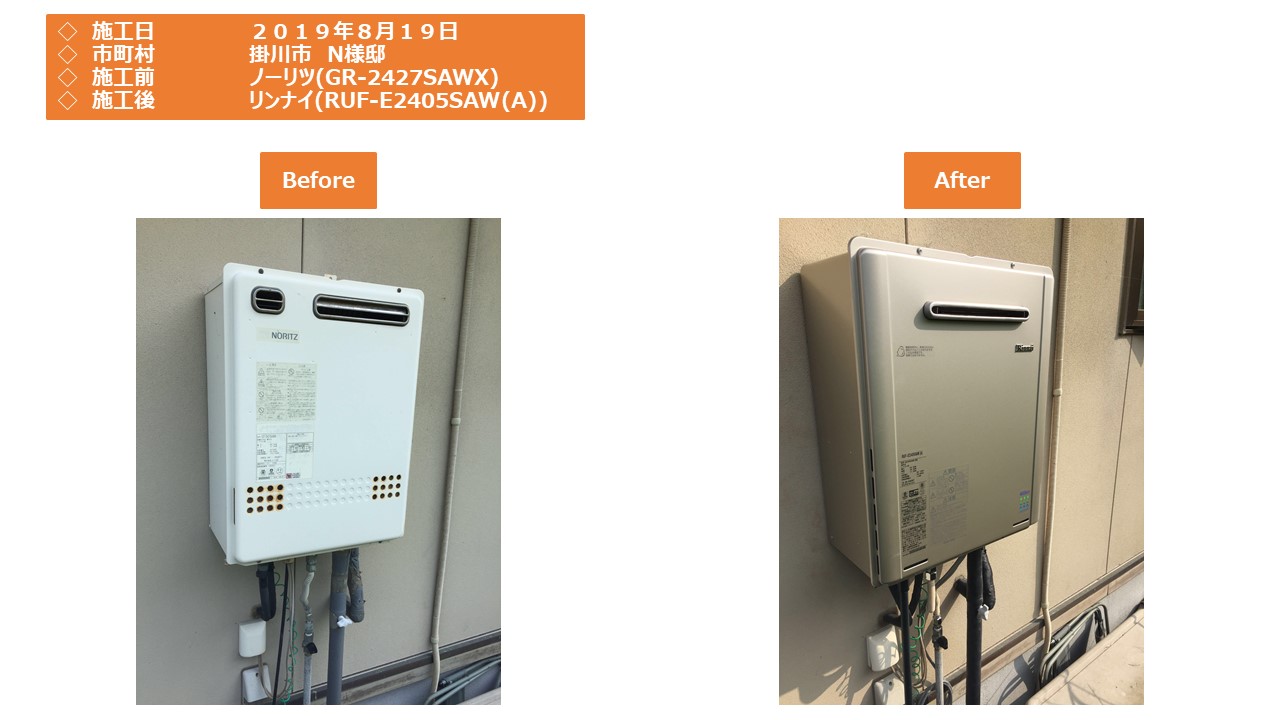 本日は、掛川市での給湯器施工事例をアップさせていただきます。