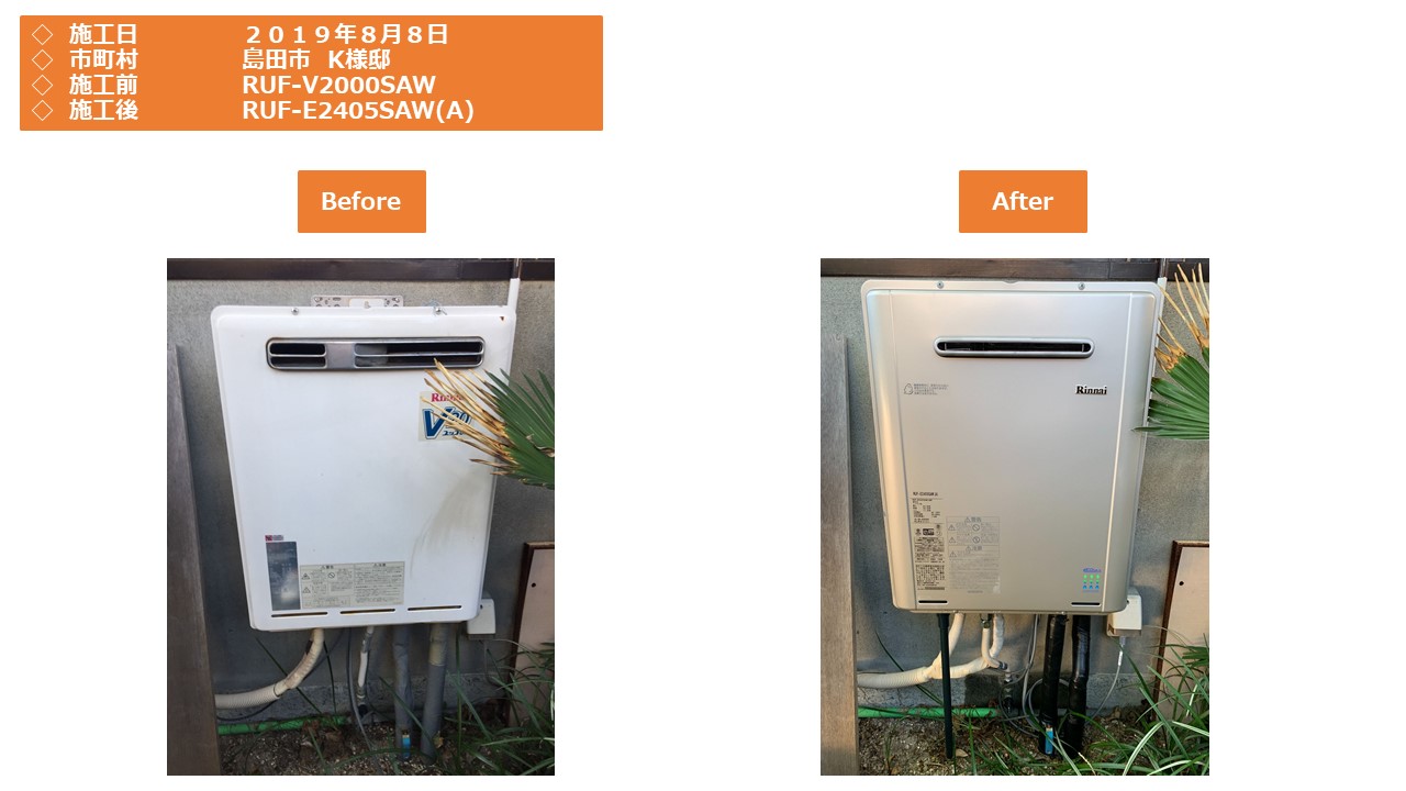 本日は、島田市での給湯器施工事例をアップさせていただきます。