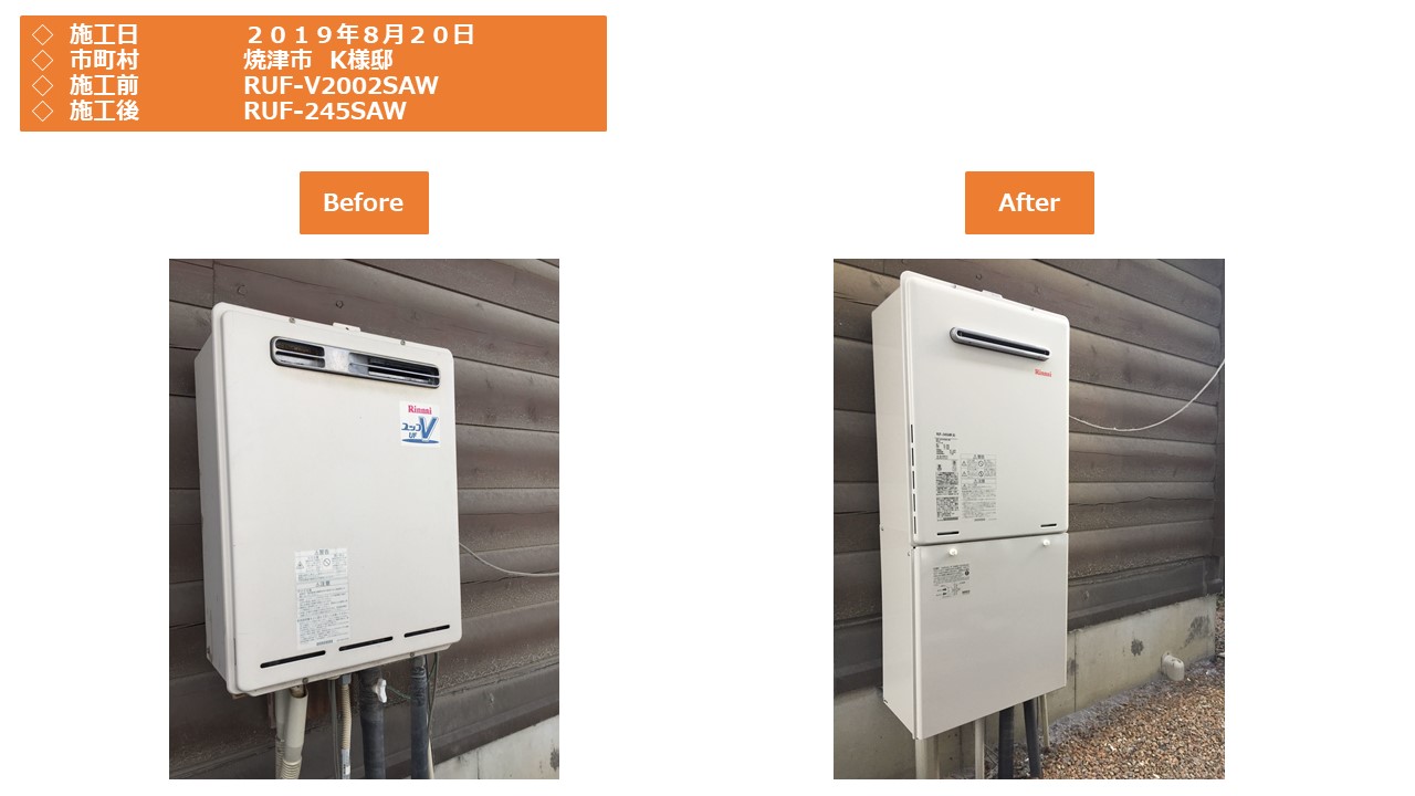 本日は、焼津市での給湯器施工事例をアップさせていただきます。