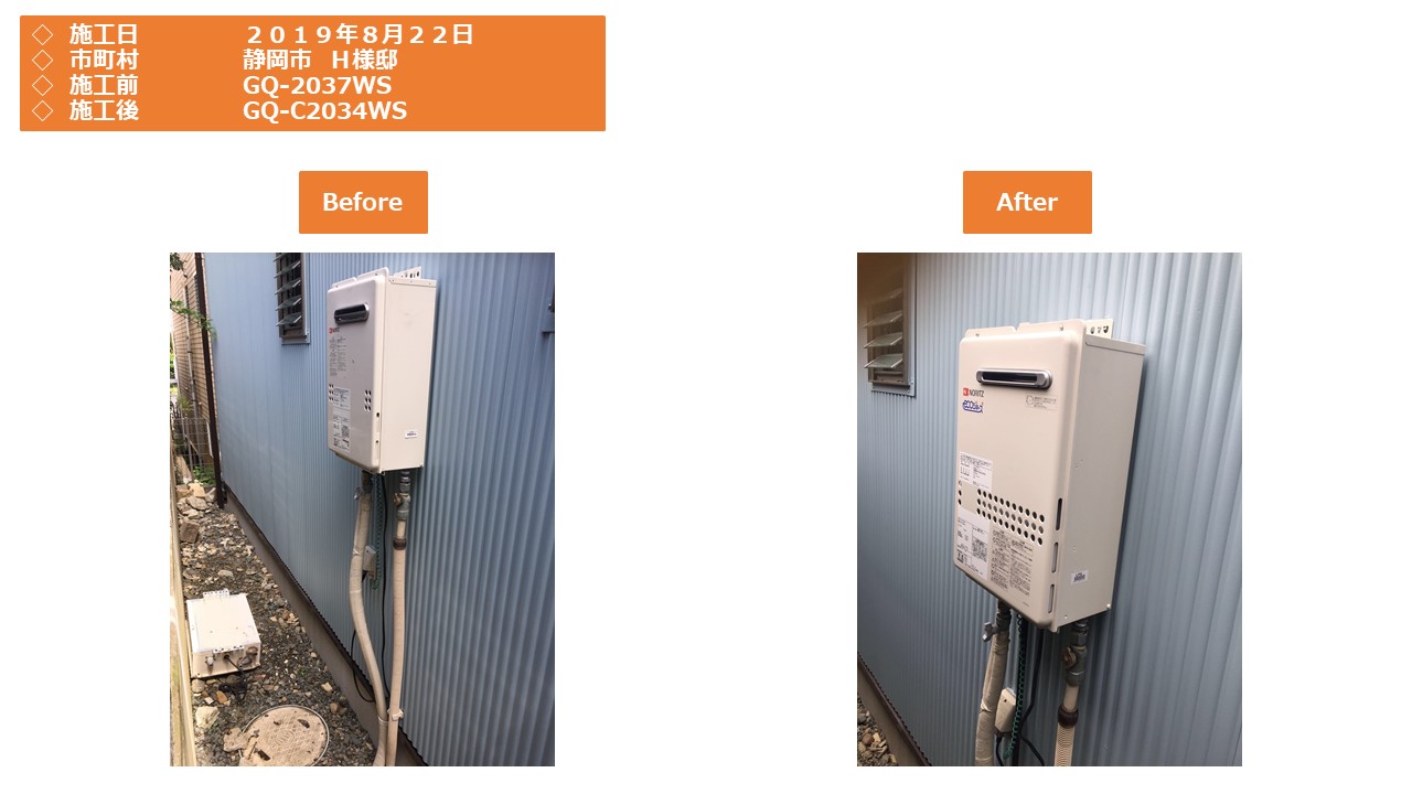 本日は、静岡市清水区での給湯器施工事例をアップさせていただきます。