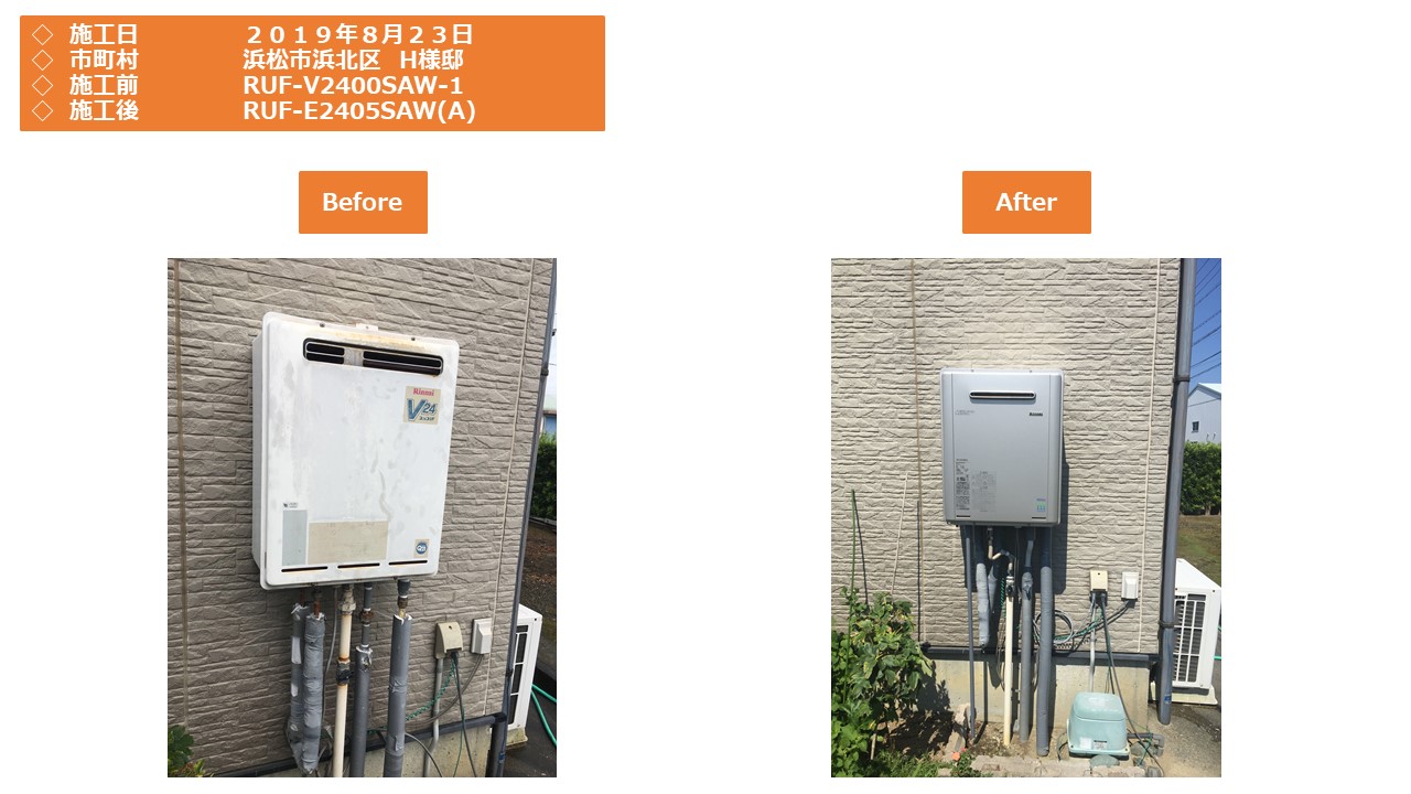 本日は、浜松市浜北区での給湯器施工事例をアップさせていただきます。