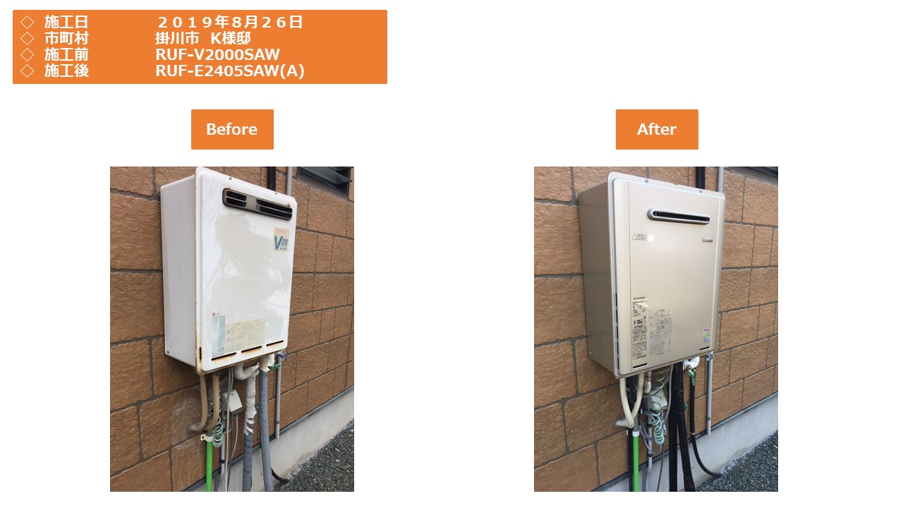 本日は、掛川市での給湯器施工事例をアップさせていただきます。