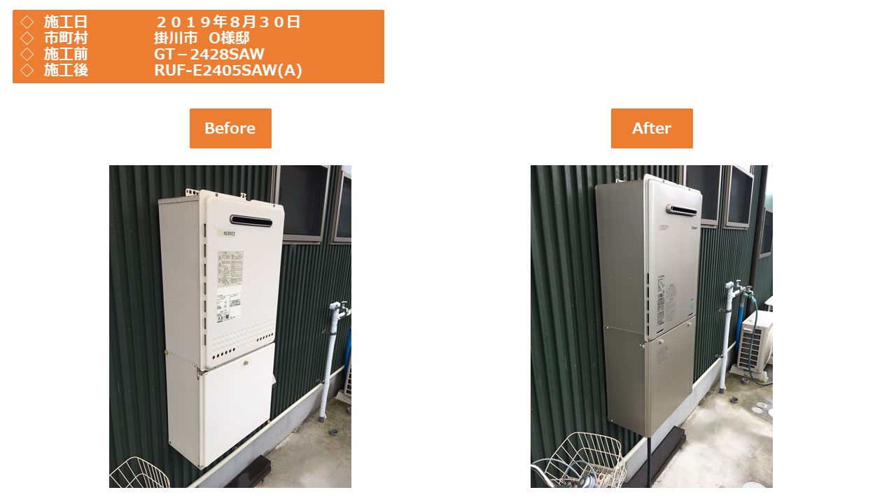 本日は、掛川市での給湯器施工事例をアップさせていただきます。