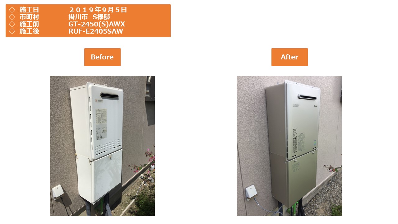 本日は、掛川市での給湯器施工事例をアップさせていただきます。