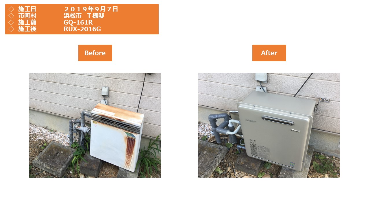 本日は、浜松市北区での給湯器施工事例をアップさせていただきます。