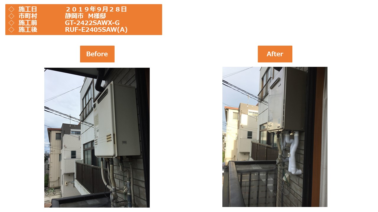 本日は、静岡市での給湯器施工事例をアップさせていただきます。