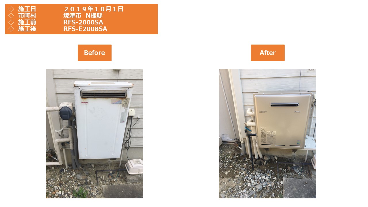 本日は、焼津市での給湯器施工事例をアップさせていただきます。