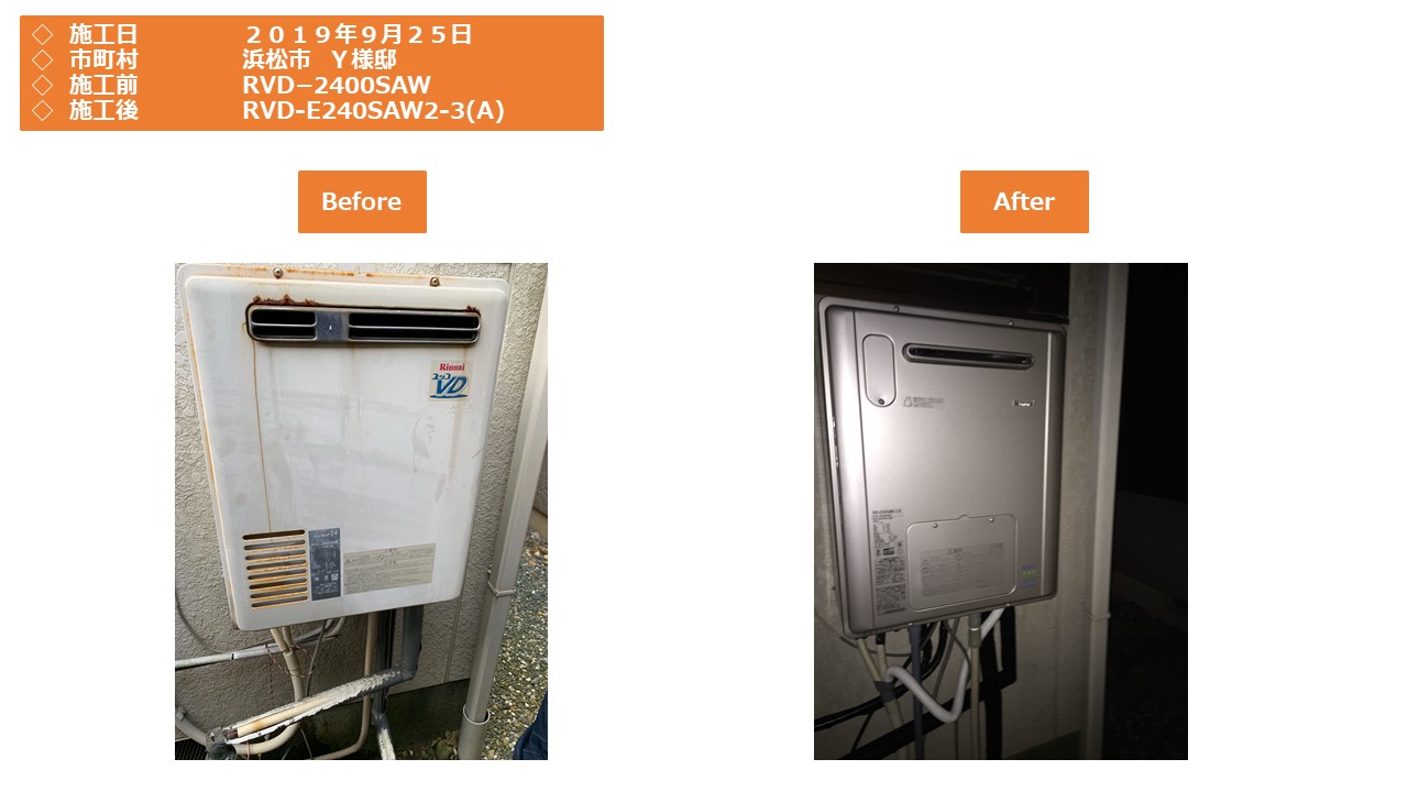 本日は、浜松市での給湯器施工事例をアップさせていただきます。