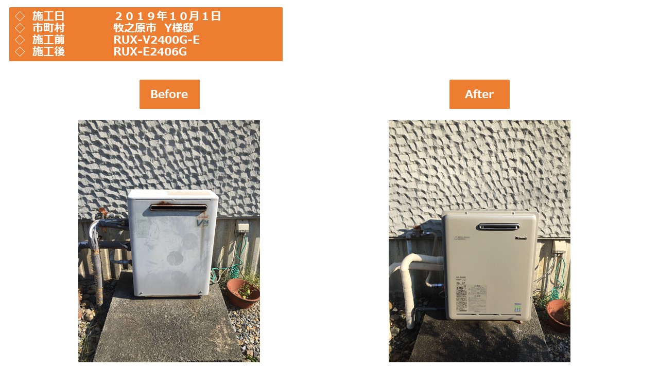 今回のお客様はリンナイの「 RUX-V2400G-E 」からリンナイの「 RUX-E2406G 」への交換でした。