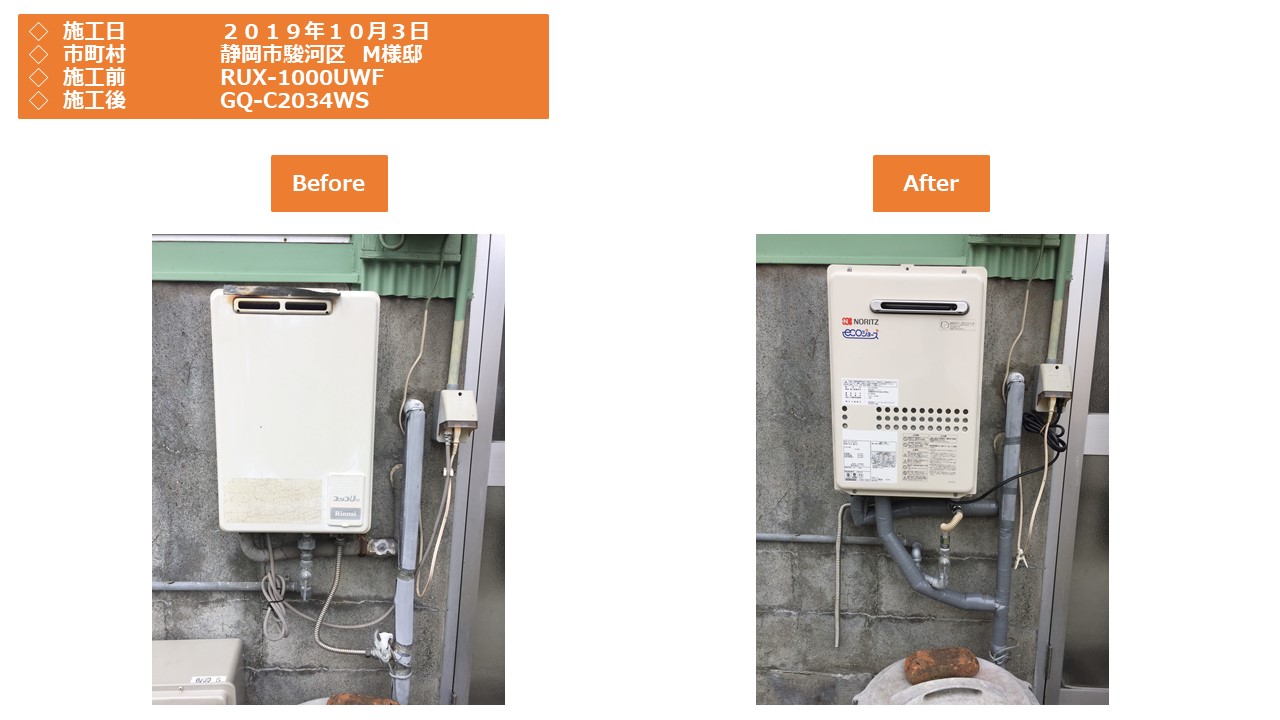 本日は、牧之原市での給湯器施工事例をアップさせていただきます。