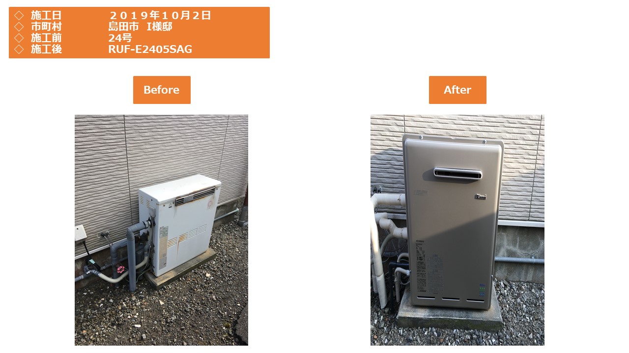 本日は、島田市での給湯器施工事例をアップさせていただきます。