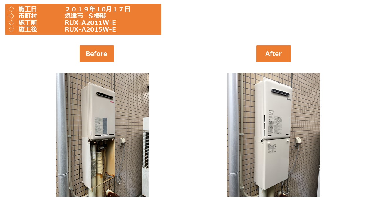 本日は、焼津市での給湯器施工事例をアップさせていただきます。