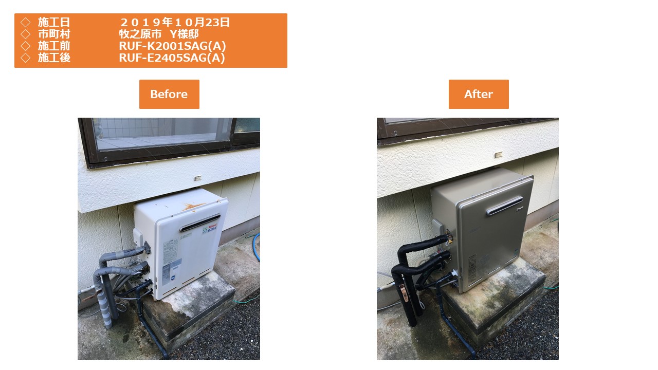 今回のお客様はリンナイの「 RUF-K2001SAG(A) 」からリンナイの「 RUF-E2405SAG(A) 」への交換でした。