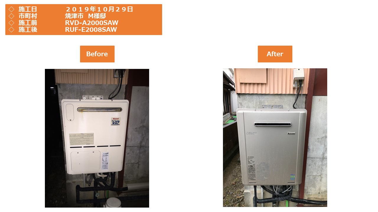 本日は、焼津市での給湯器施工事例をアップさせていただきます。